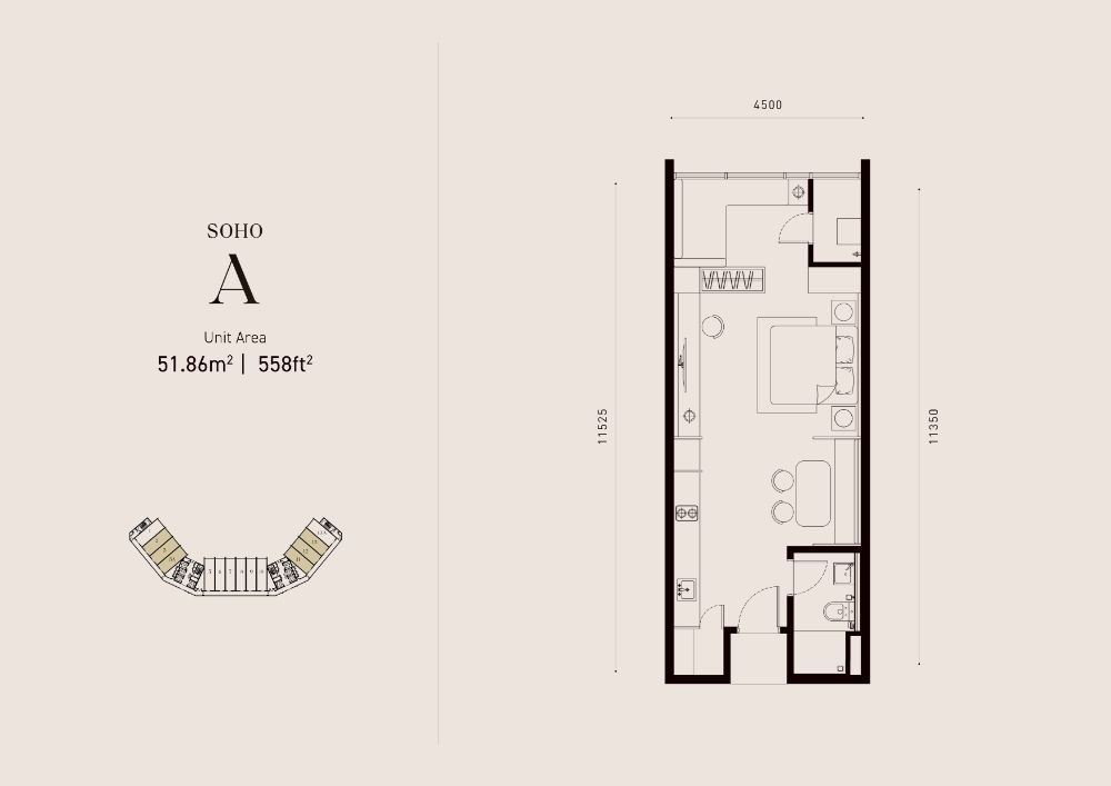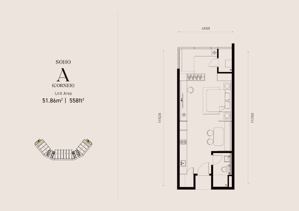 Soho A - 558 SqFt (Corner)